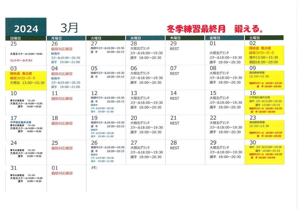 3月練習スケジュール