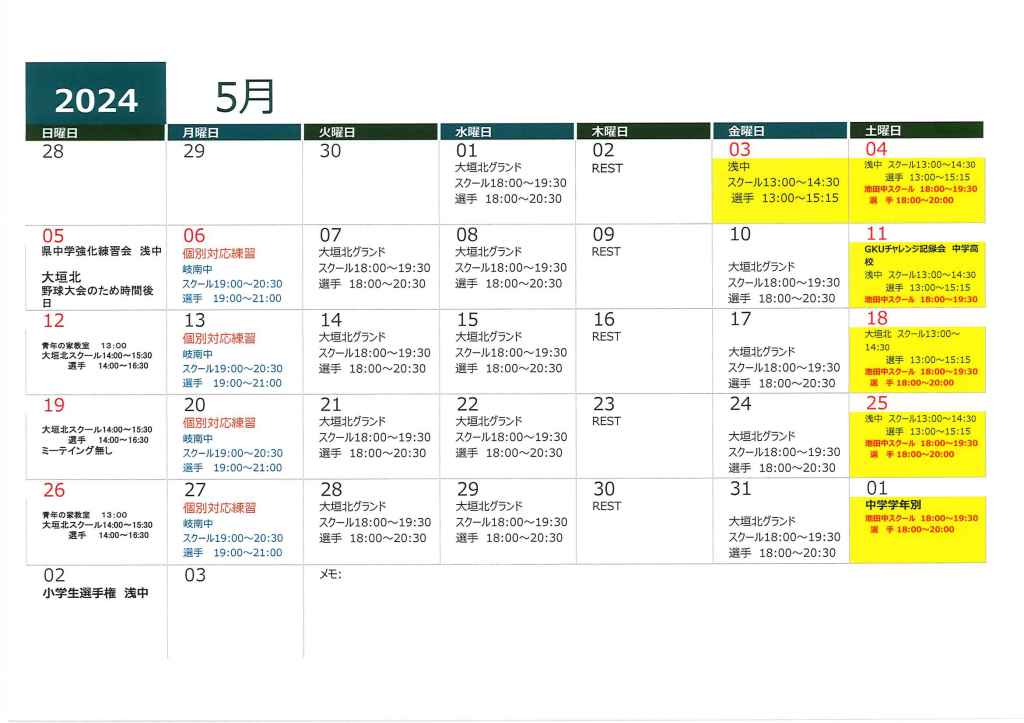 5月スケジュール