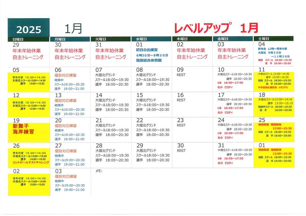 1月スケジュール
