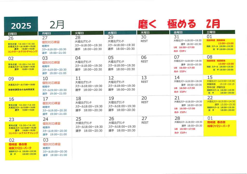 2月 スケジュール