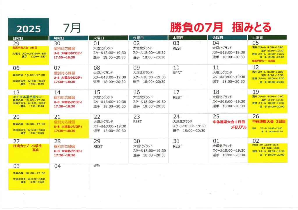 7月 スケジュール