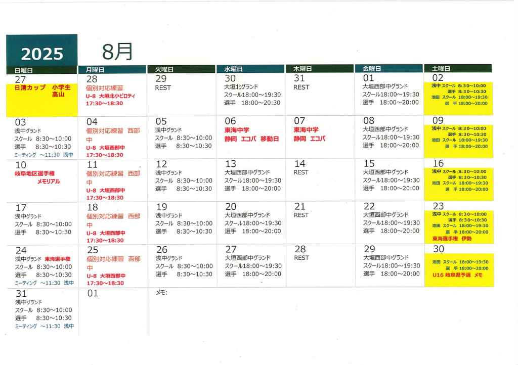 8月 スケジュール 訂正版