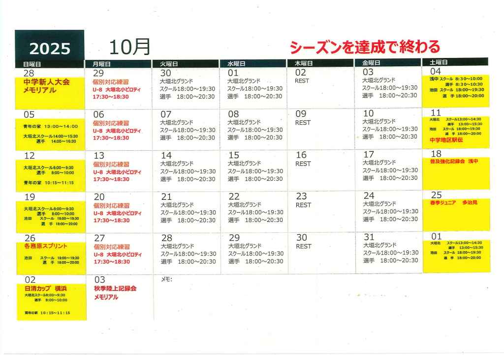 10月 スケジュール 訂正