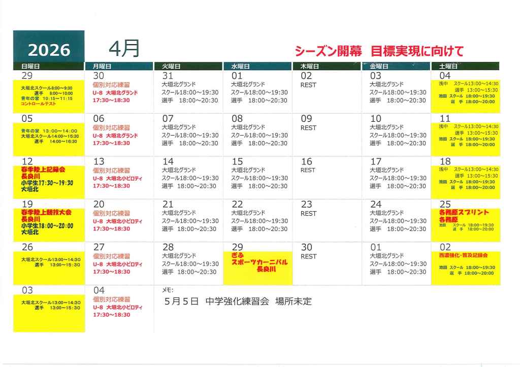 4月 スケジュール 訂正